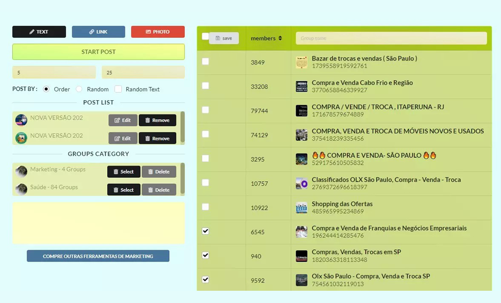 Com está extensão é possível selecionar diversos grupos do facebook que você faz parte e deixar salvo vários tipos de postagens personalizadas para vender seu produto ou serviço.